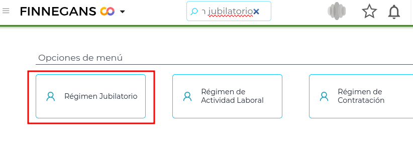 - En la barra de búsqueda ingresar la palabra “Régimen Jubilatorio"
