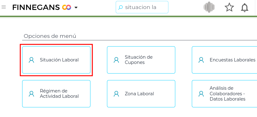 - En la barra de búsqueda ingresar la palabra “Situación Laboral"