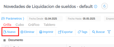 - Opción Menú → Gestión de Capital Humano → Liquidación de Sueldos → Novedades → Novedades de Liquidación de Sueldo
