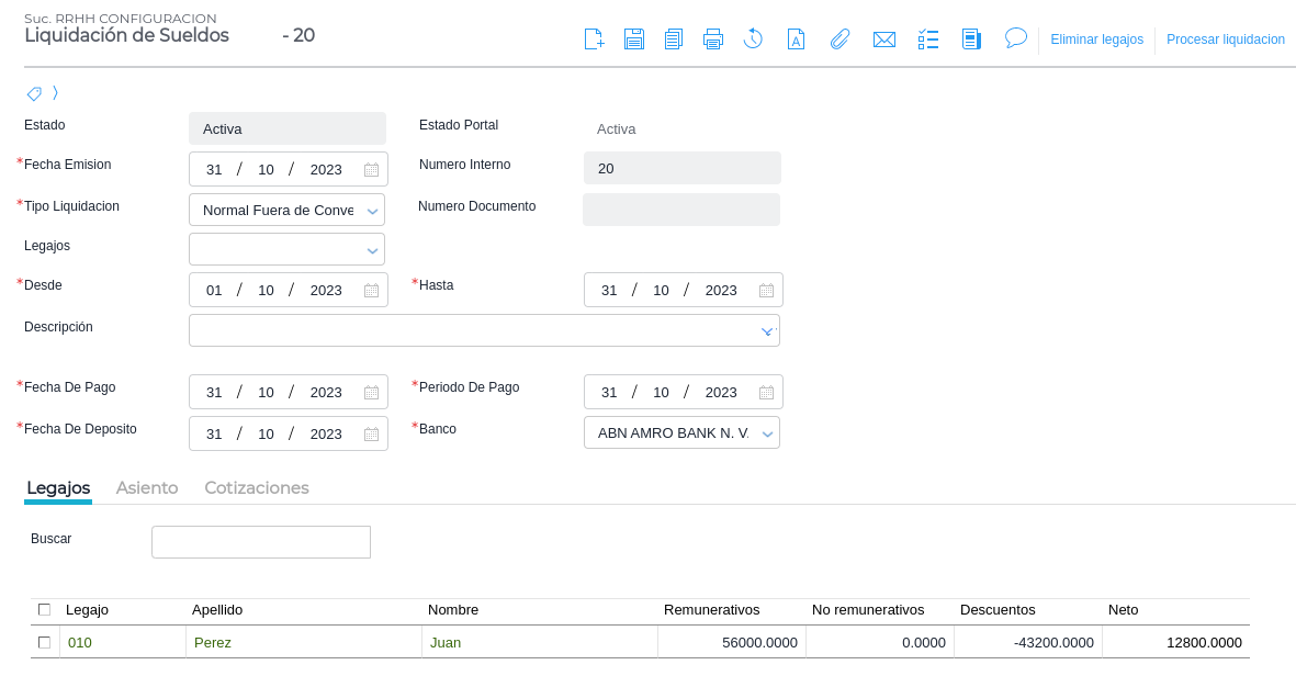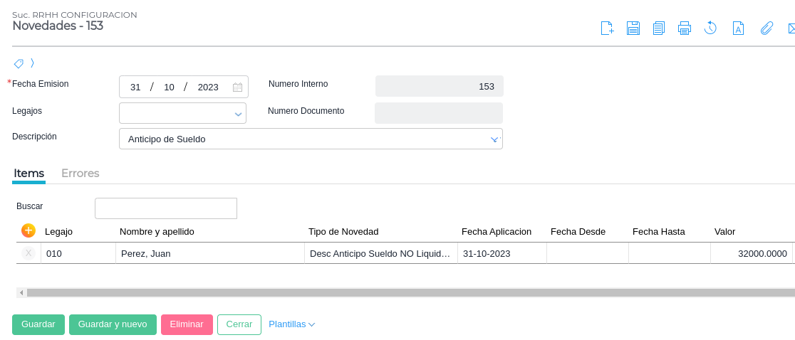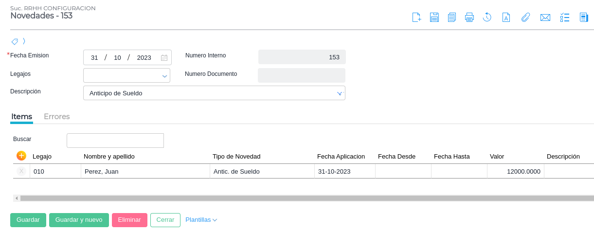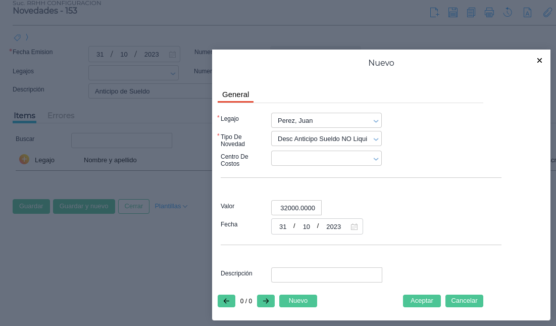 Paso 2: Generar la liquidación normal, agregar al empleado y liquidarlo, en esta liquidación se descontará el anticipo de sueldo: