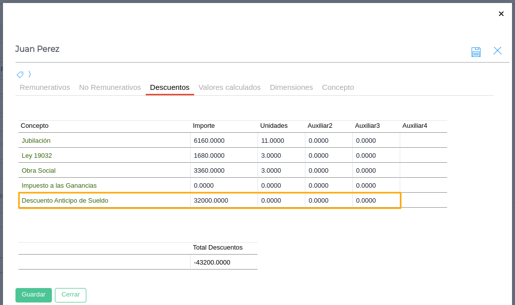 Liquidar anticipo de sueldo y descuento en recibos separados