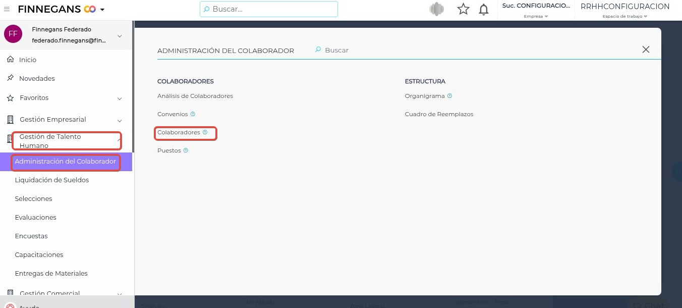 - Ingresar a Gestión de talento humano → Administración del colaborador → Colaboradores.