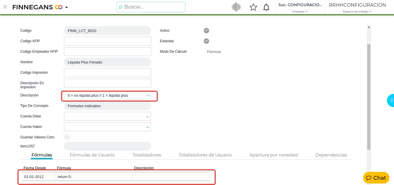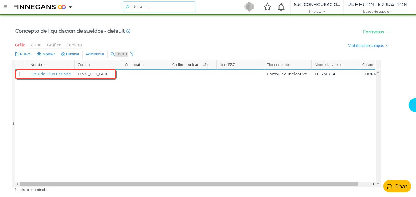 Buscar el concepto “FINN_LCT_6010” (Liquida Plus Feriado).