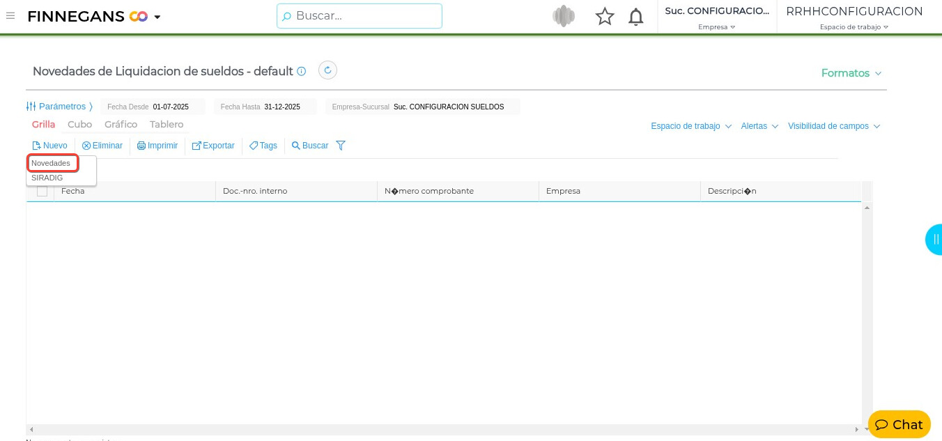 Generar una nueva liquidación de sueldos → Procesar la liquidación.