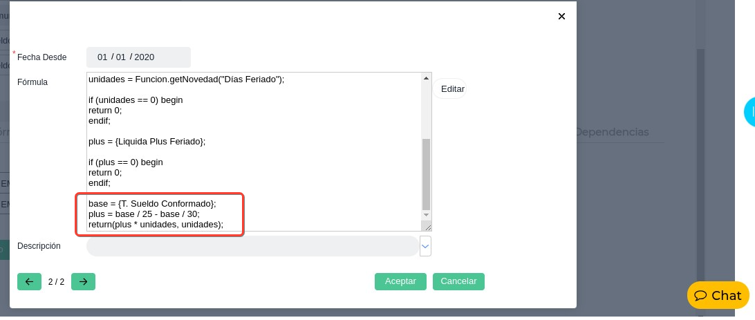 El concepto cuenta con dos indicativos, “return 0” que le ordenara al sistema no liquidar el plus, por ende, abonara los días de feriado. O “return 1” que le indicara al sistema que traiga un plus en lugar de días.