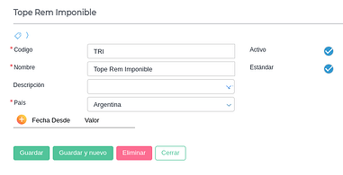Existen valores constantes que aplican a todos los Espacios de Trabajo. Son valores que publican las Entidades Oficiales de cada país.