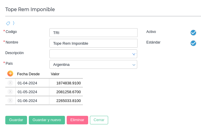 Anteriormente, estos valores se informaban desde un concepto, haciendo que la fórmula retorne este valor según su fecha de vigencia.