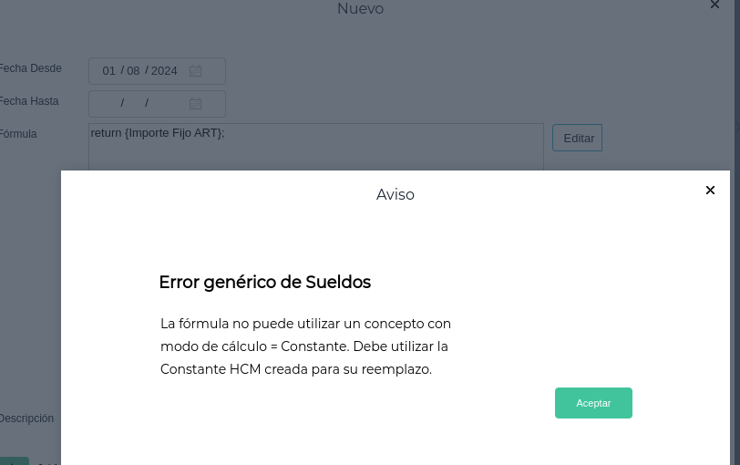 En lo sucesivo, cada concepto que requiera el valor de esa constante, obligará desde el editor de fórmulas a usarla, no permitiendo utilizar el antiguo concepto.