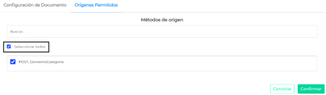 Cliquear en la solapa “Orígenes Permitidos” y presionar el check “Seleccionar todos”.
