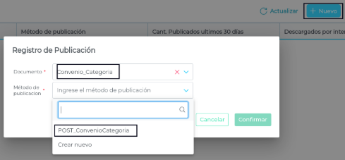 Hacer clic en “Nuevo”, completar los campos necesarios para la configuración del método de publicación.