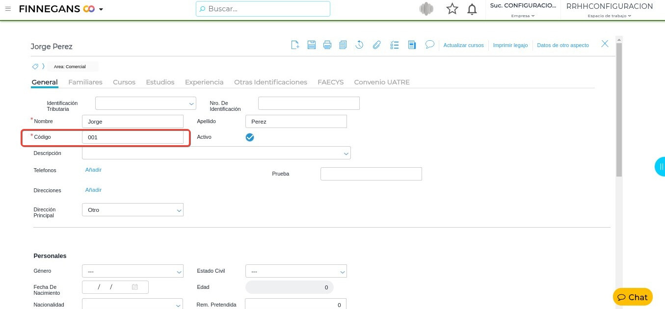 - El codigo ID del colaborador se encuentra en el legajo del mismo sobre la solapa “Codigo”