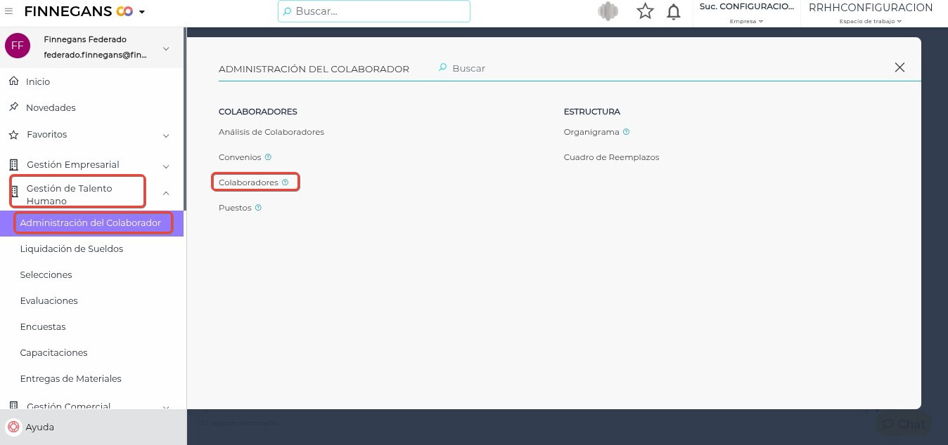 1- Ingresar a Gestión de talento Humano → Administración del Colaborador → Colaboradores.