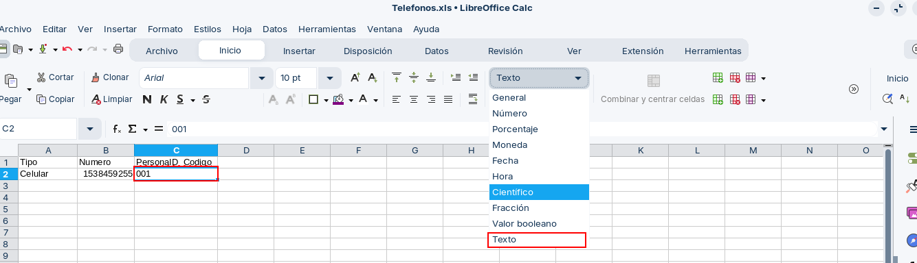 - Si el codigo ID comienza con “0” revisar que el archivo excel tenga el formato “texto” en la celda, de lo contrario no podrian ingresarse dichas cifras en el campo.
