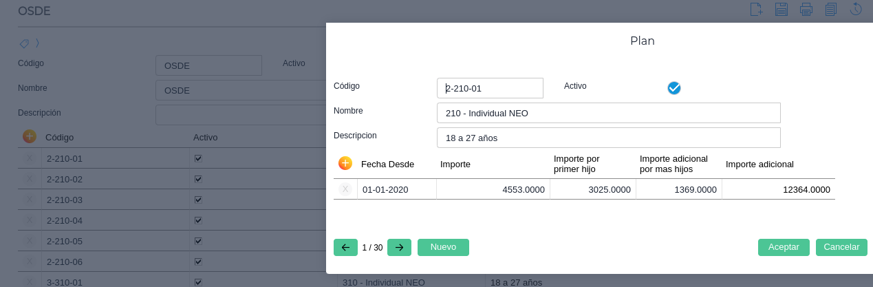 2 - Dentro de este maestro el usuario deberar cargar los planes que tiene la medicina prepaga y los montos con sus vigencias respectivas. Los usuarios deberán mantener los valores actualizados en este maestro.