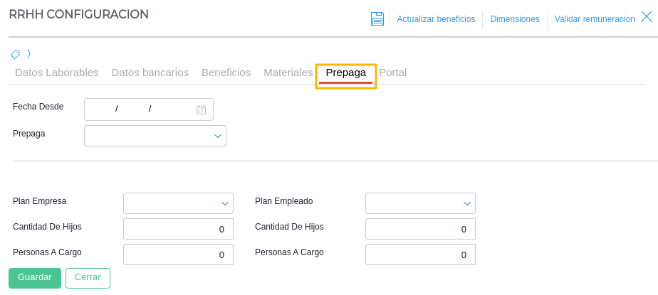 - Valor Prepaga Plan Empresa: calcula el importe que la empresa le cubre al