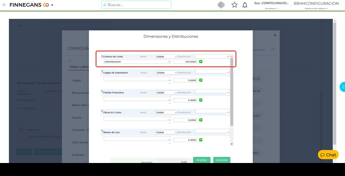 Caso A (Distribución de centro de costo desde el legajo)