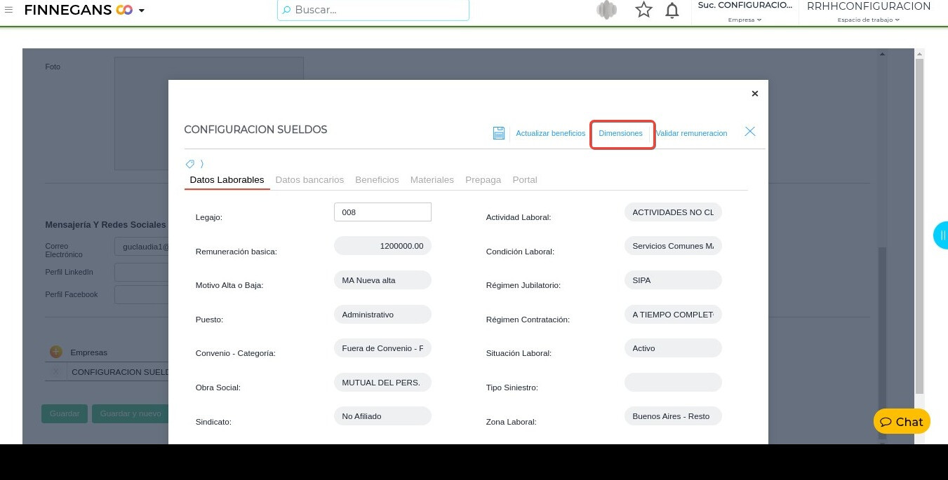Ingresar al legajo del colaborador → Hacer clic en la solapa “Dimensiones”