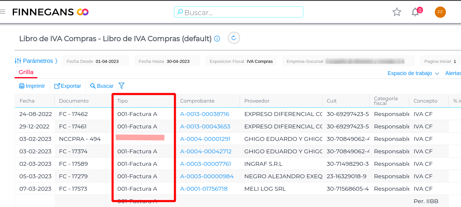 Consulta: Al emitir informe Libro de IVA Compras se observa que las Notas de Crédito no muestran el código que corresponde para este tipo de documento en la columna Tipo.