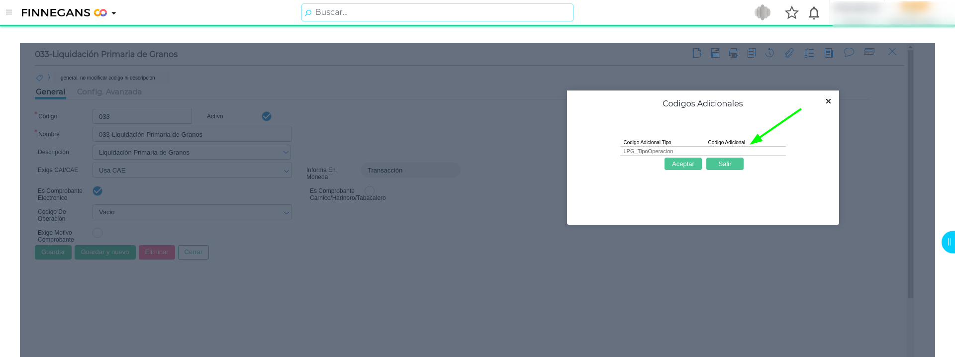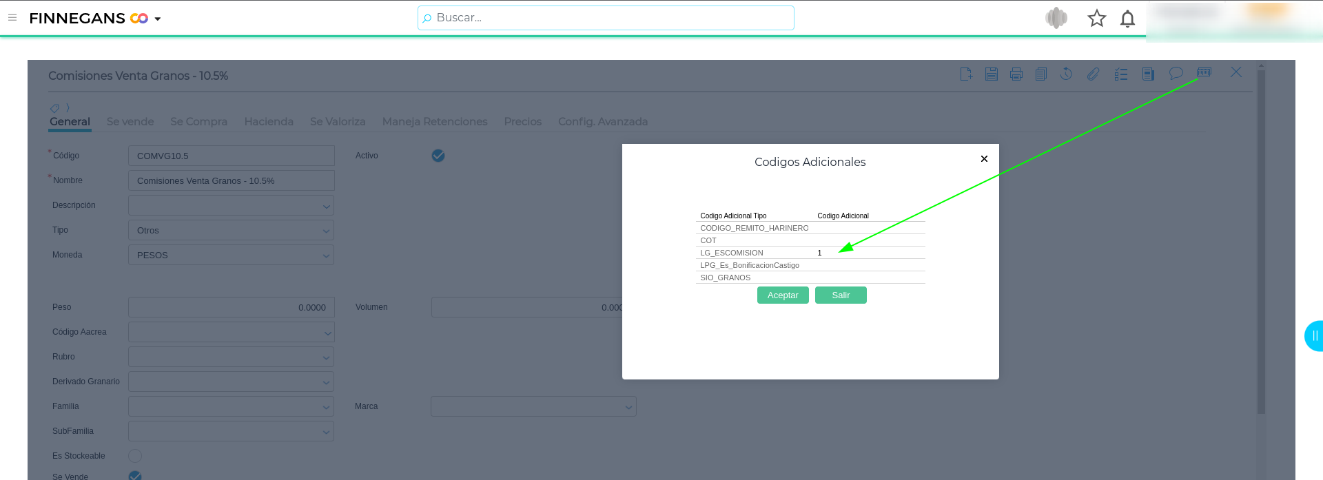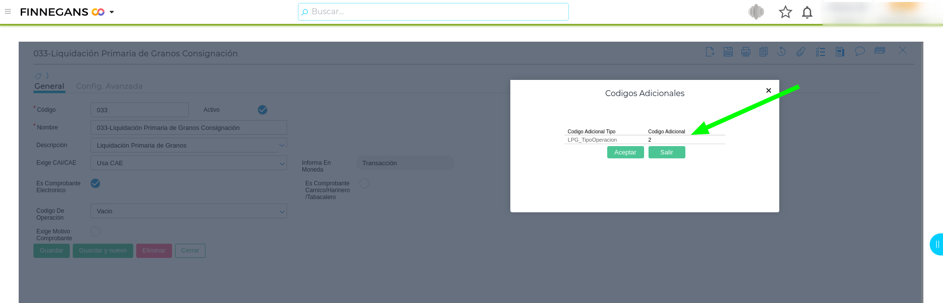*Es importante que el producto usado en la liquidación, tenga el código correspondiente configurado.