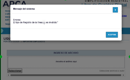 ¿Cómo solucionar el error que arroja ARCA al momento de subir el archivo del libro sueldo digital que menciona “El tipo de registro de la línea xxxx es inválido ?