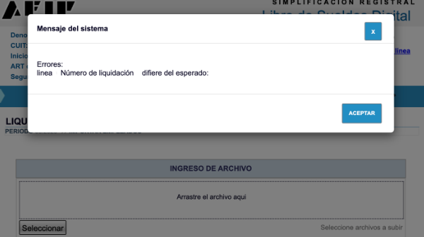 Al querer presentar una liquidación en AFIP figura el error: “Linea X Número de liquidación X difiere del esperado: X”