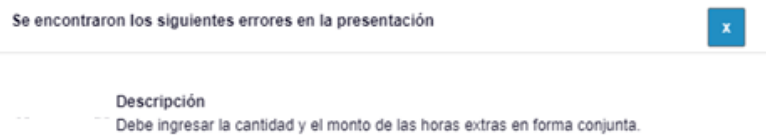 ¿Por qué ARCA arroja el error de: “Debe informar la cantidad y el monto de las horas extras en forma conjunta" al intentar validar una liquidación del Libro de Sueldos Digital?