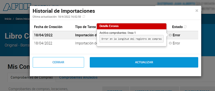 Para más información consultar el Catálogo de Errores del Portal IVA AFIP