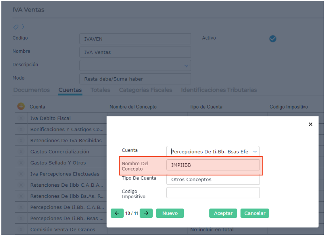- Impuestos Nacionales: PERCNAC (Para Ventas)