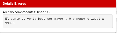 Se debe verificar el txt del archivo de comprobantes en la línea que indica el error del Portal AFIP.