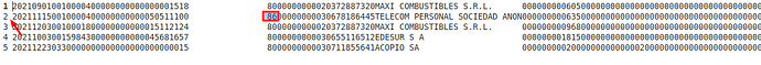 En la siguiente imagen se muestra la columna del código de identificación tributaria. Para CUIT corresponde 80; en la línea del error indica 00, por lo tanto, se debe revisar dicho proveedor.