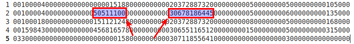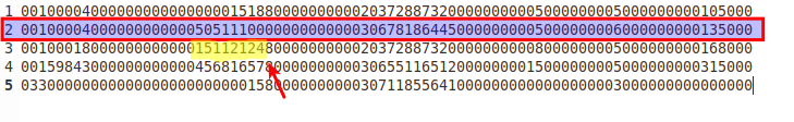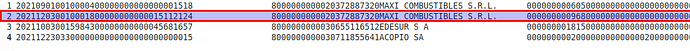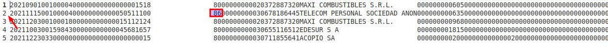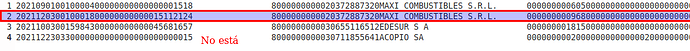 Entonces buscamos el número de comprobante 50511100 en el archivo TXT de Comprobantes, no lo encontramos. En consecuencia, el inconveniente se encuentra en la línea 2 del archivo TXT de Alícuotas, sobre el número 50511100.