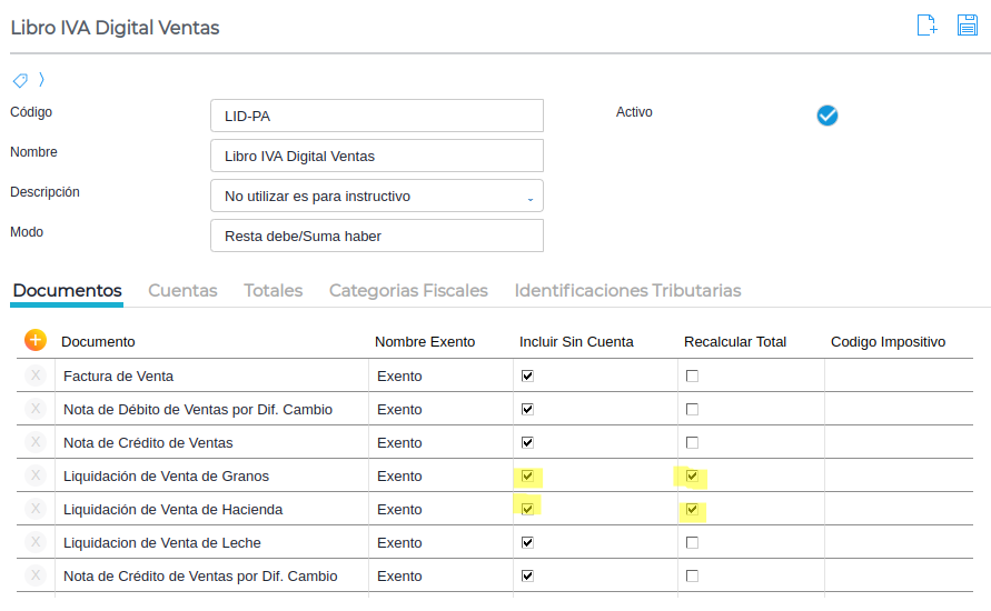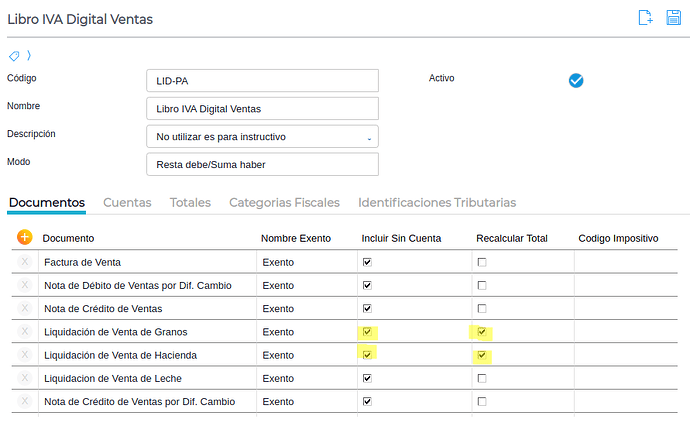 Las siguientes consideraciones modificarán cómo toma el sistema los datos para la exportación del Libro IVA Digital.