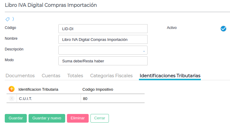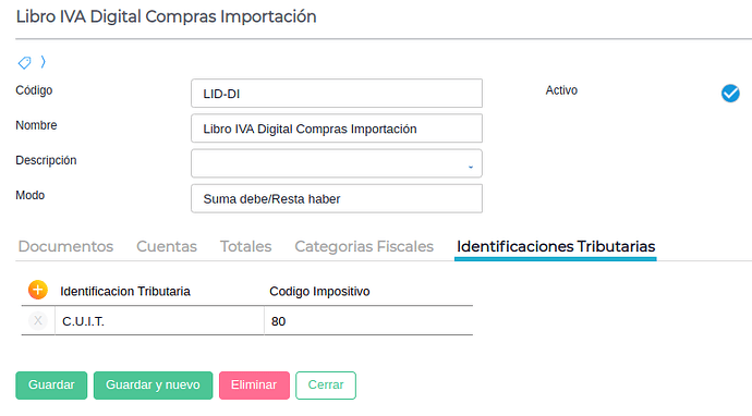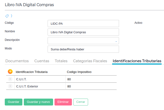 Tip: Es importante aclarar que en la exposición fiscal para compras, la única categoría fiscal que corresponde incluir es la CUIT o CUIT Exterior (ambos código 80)