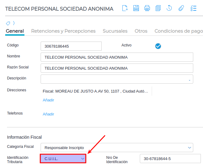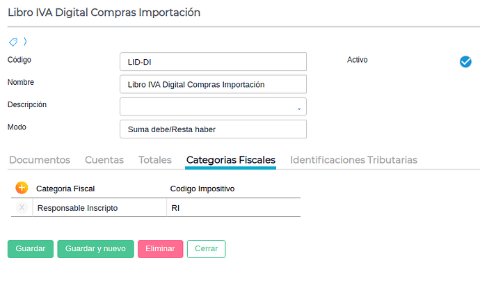 Se debe agregar la categoría Fiscal “Responsable Inscripto” con el código impositivo “RI”