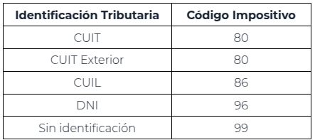 - Código para el tipo de identificación fiscal. En este caso 80 corresponde al CUIT