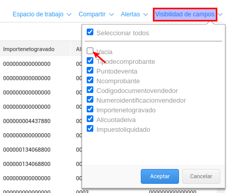 - Ocultar la columna “Vacía”: Ir a Visibilidad de campo y destildar la columna “vacía”