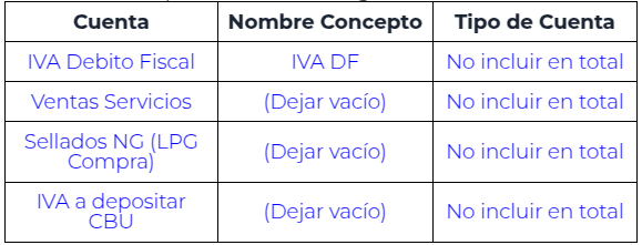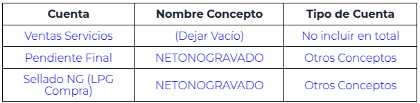 - La cuenta “Sellado NG (LPG Compras)” debe ser independiente para las liquidaciones de compra de granos.