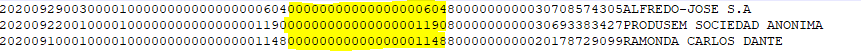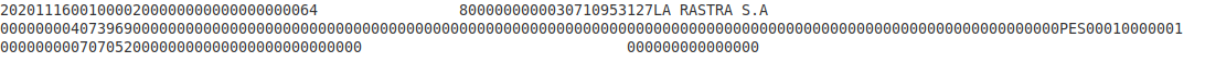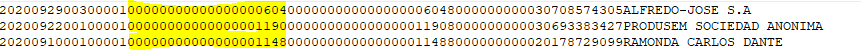 La longitud de línea correspondiente al archivo Comprobante de Compras es de un total de 325 caracteres.