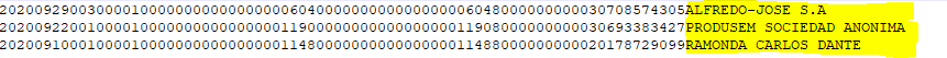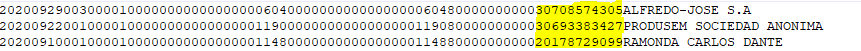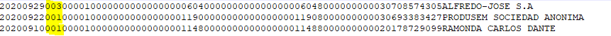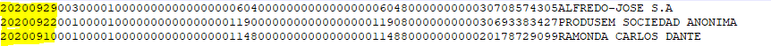 La longitud de línea correspondiente al archivo Comprobante de Compras es de un total de 325 caracteres.