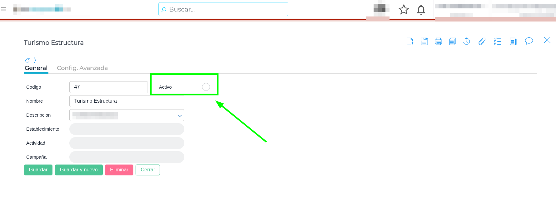 - Verifica que el centro de costos esté inactivo. Para ello, entra en el centro de costos y asegúrate de que el casillero