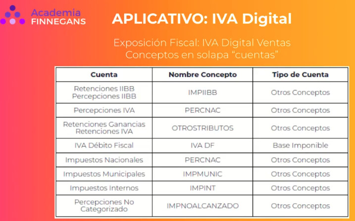 - Tipo otros conceptos: Utilizar para cuentas que no impactan en la tasa impositiva, como percepciones, retenciones, exentos o no gravados.
