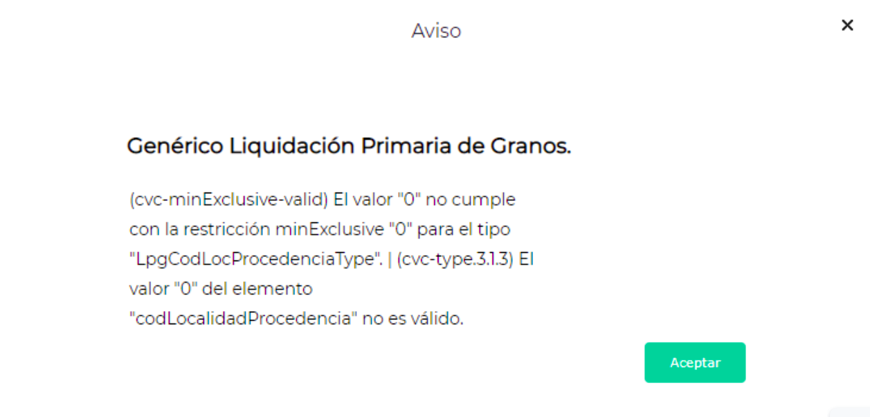 Al querer obtener COE de una liquidación de compra de granos el sistema arroja el siguiente error :