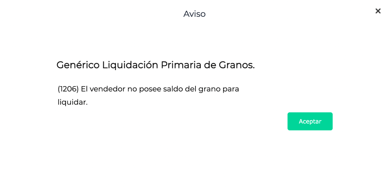 Es un aviso de AFIP que indica que el vendedor no posee saldo del grano para liquidar.