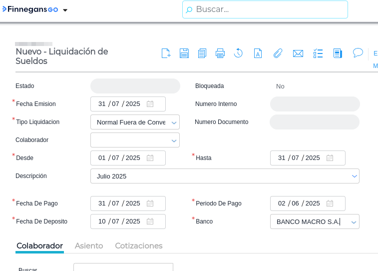 La liquidación que debemos realizar para que el sistema tenga en cuenta todos los conceptos que acabamos de cargar debe realizarse junto a la liquidación normal, de esta manera, nos aseguramos de que los valores impacten correctamente.