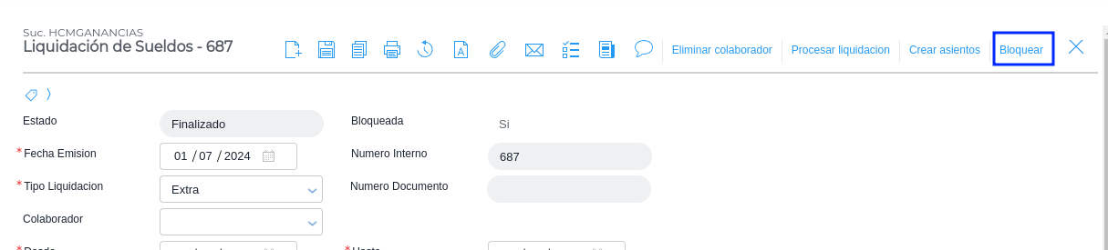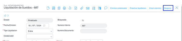 Desde la liquidación de sueldos, ir a Más acciones > Bloquear.