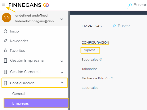 El código de la empresa podés encontrarlo en el maestro de sucursales, ingresando en Menú > Configuración > Empresas > Empresa: