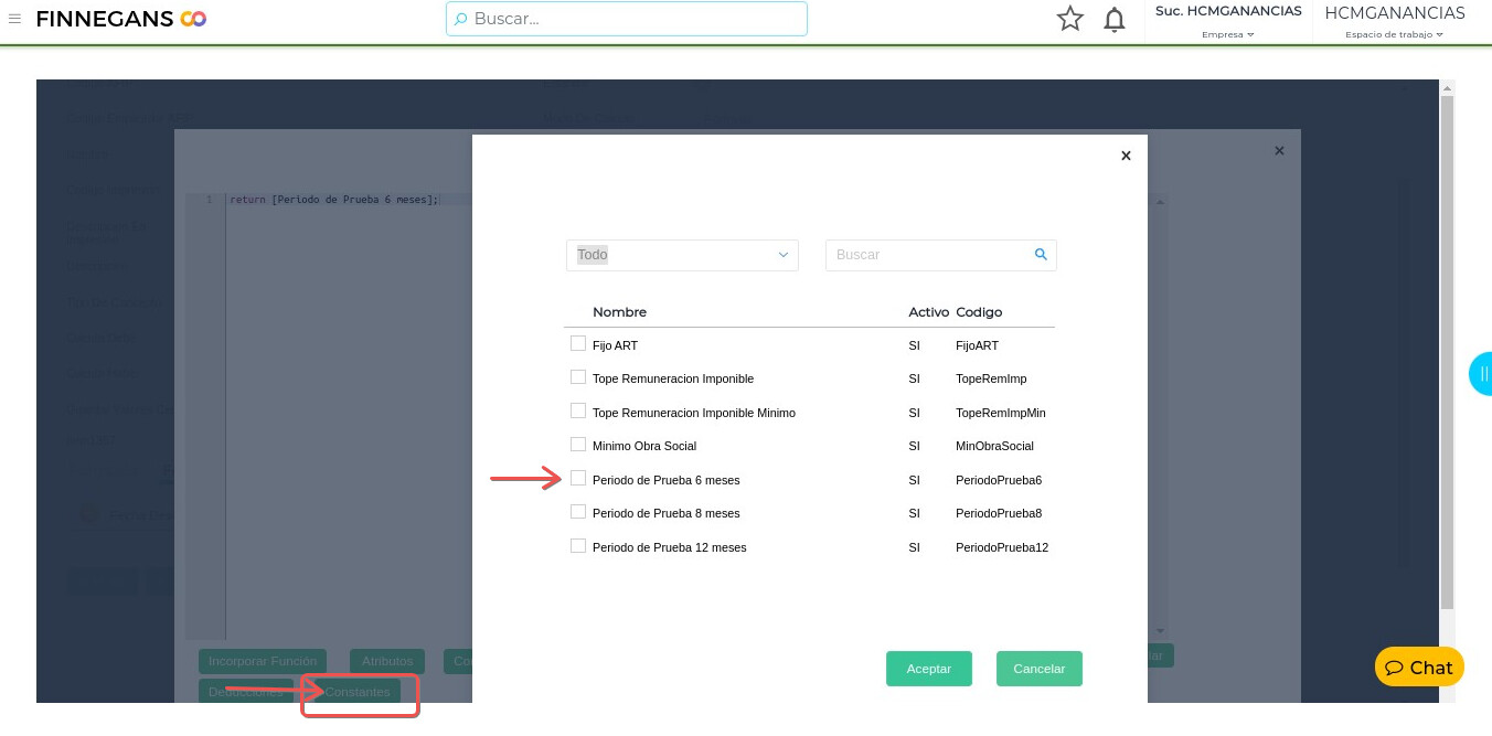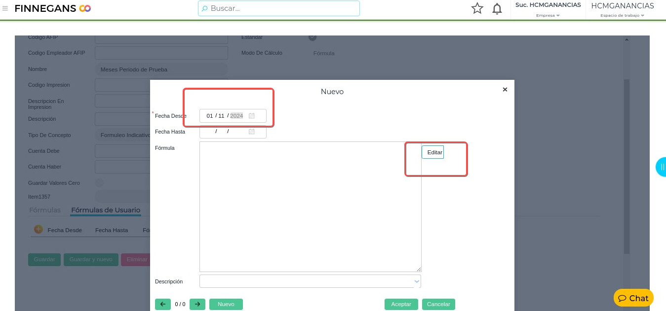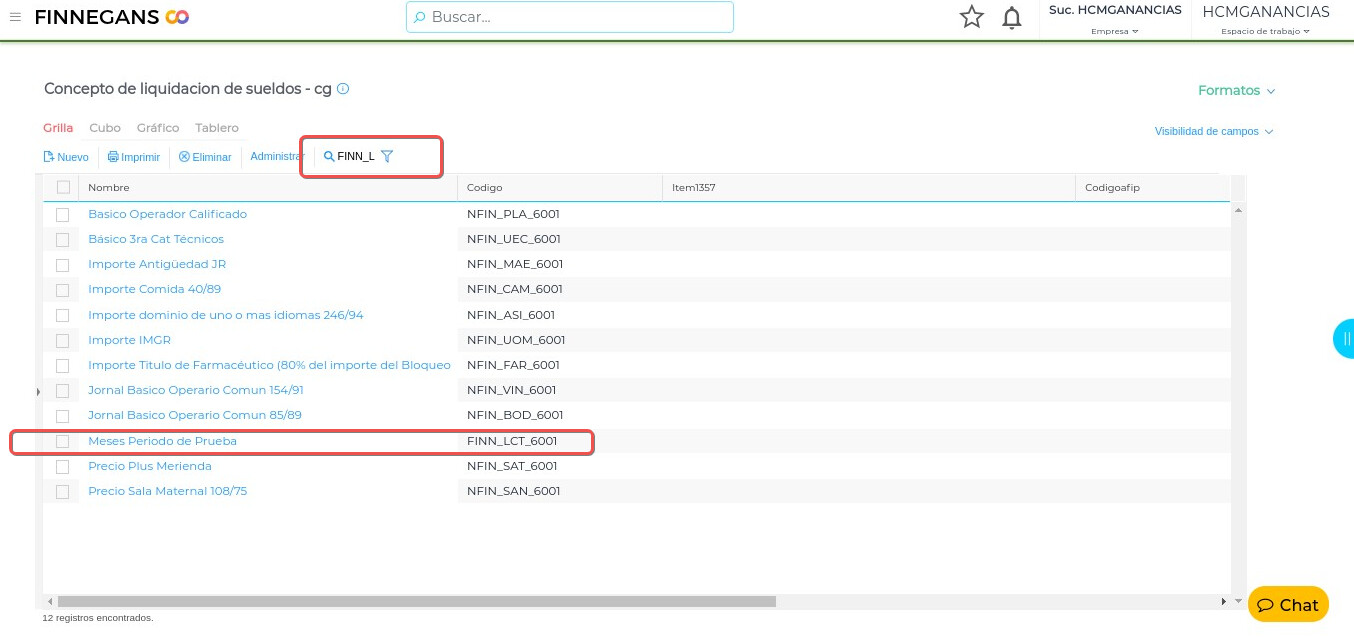 Buscar e ingresar al concepto Meses Periodo de Prueba (FINN_LCT_6001).