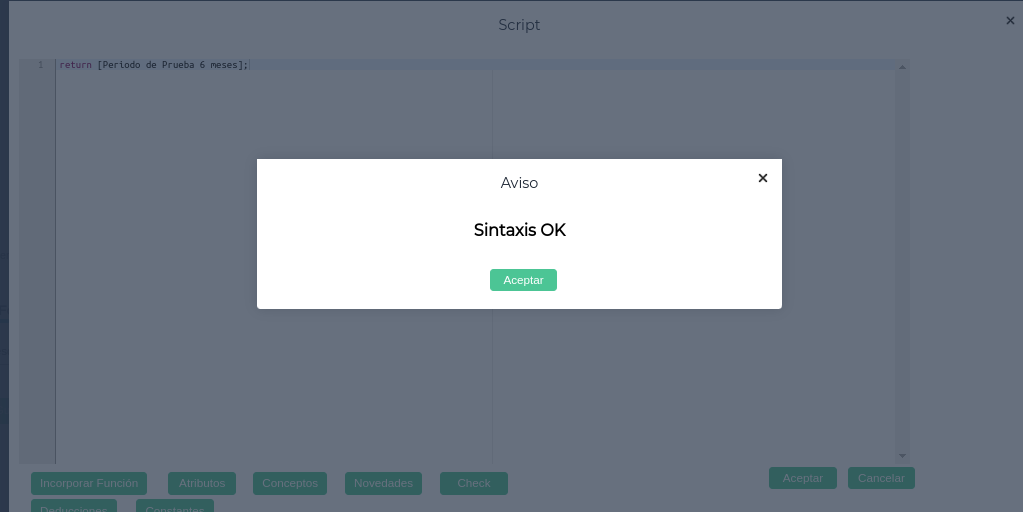 Por último, presionar el botón Check para corroborar que no haya errores en la sintaxis de la fórmula.