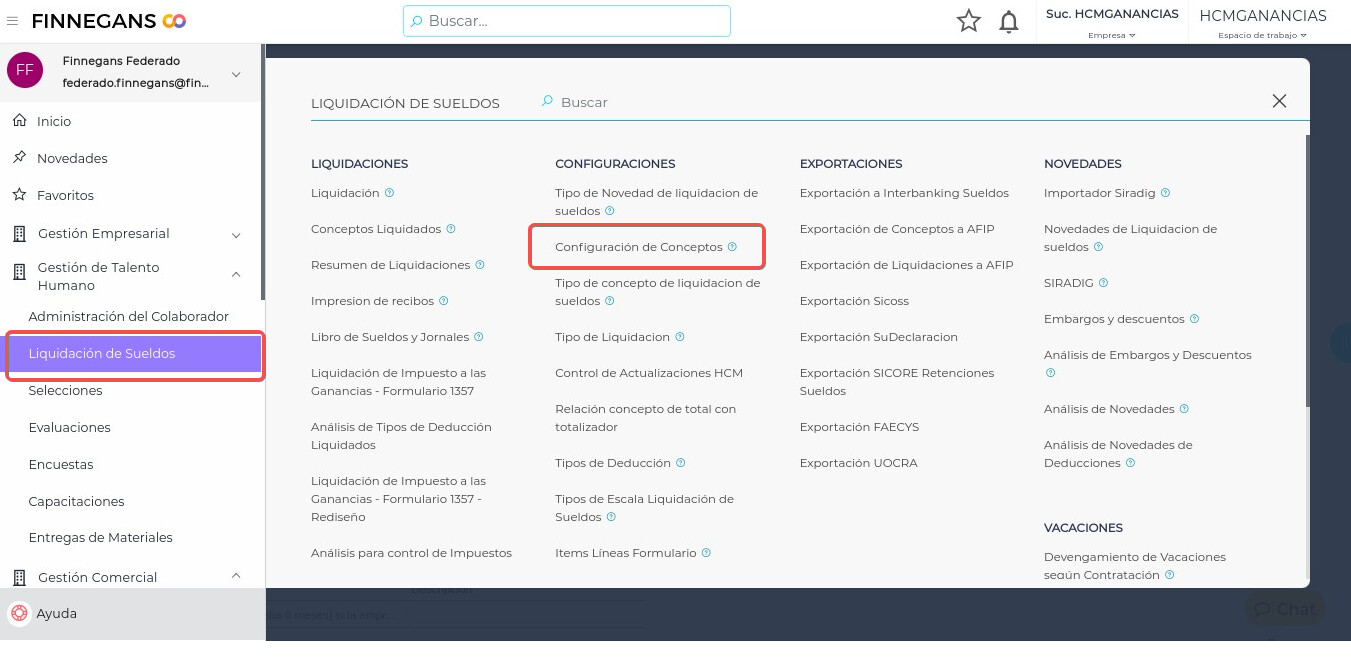 Ingresar al Menú → Gestión de Talento Humano → Liquidación de Sueldos → Configuración de conceptos.