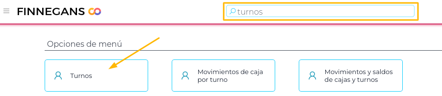 Para ingresar al listado de turnos pueden hacerlo desde el buscador tipeando la palabra “turnos” y luego haciendo clic en el maestro correspondiente.